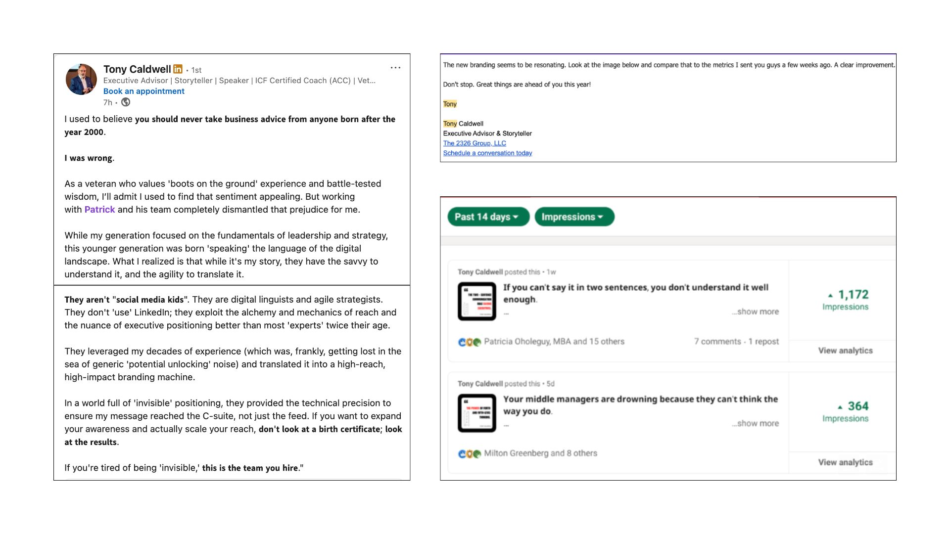 "If you are looking for clarity and impact for your LinkedIn efforts, look no further than Chuma's system." - Tony Caldwell