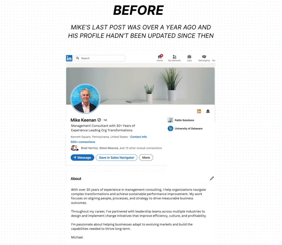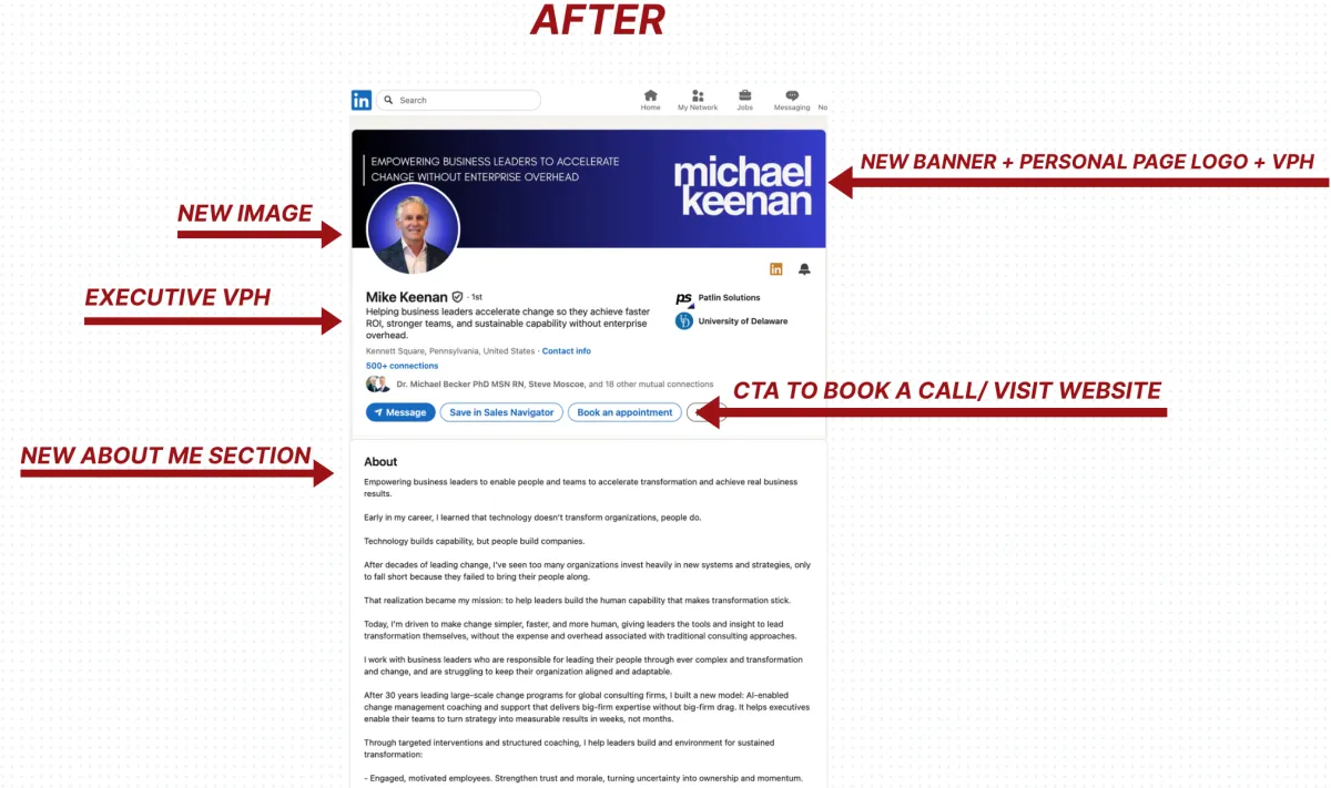 A fully optimized headline, about section, and experience section designed to convert viewers into leads.
