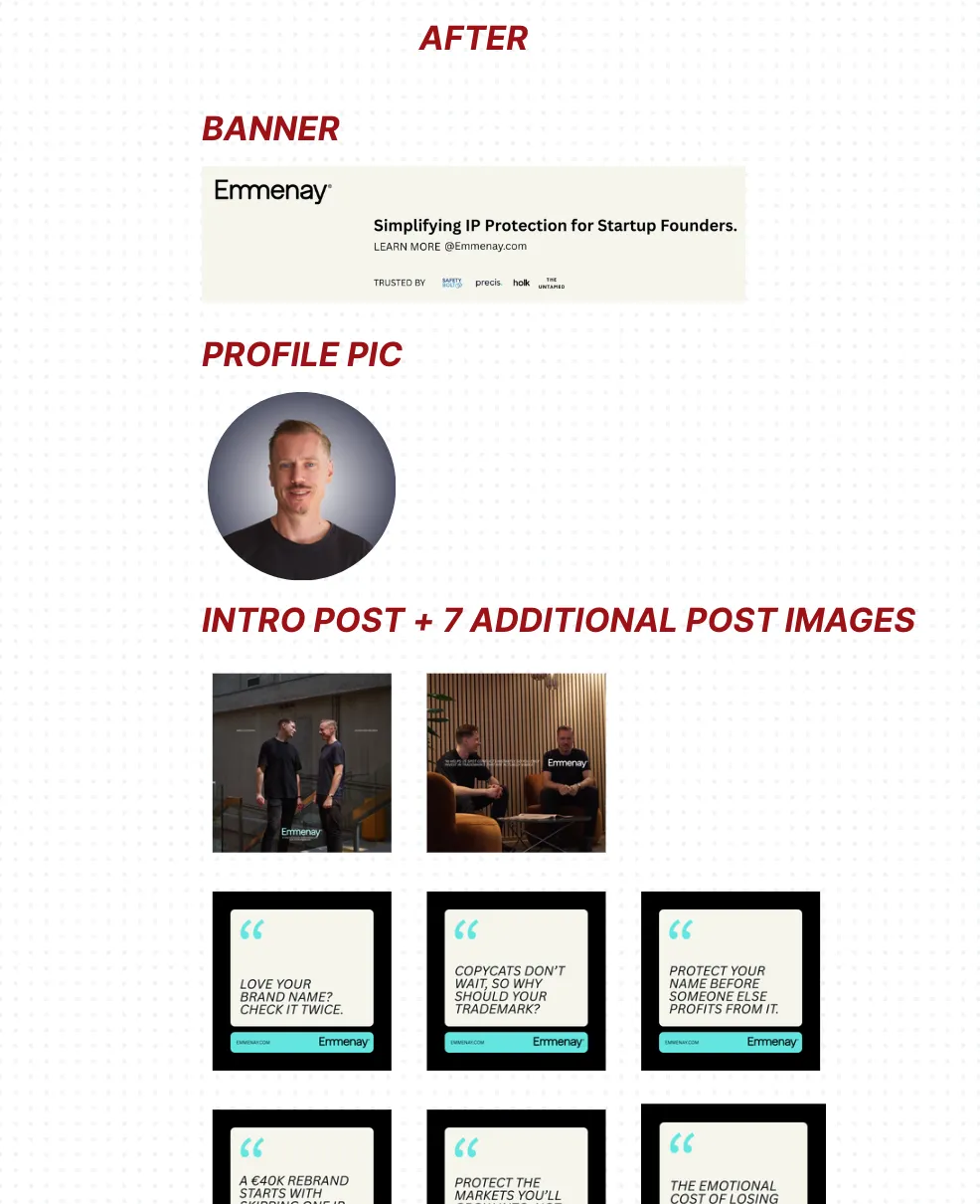 We design scroll-stopping visual assets for each post, perfectly aligned with your new brand.